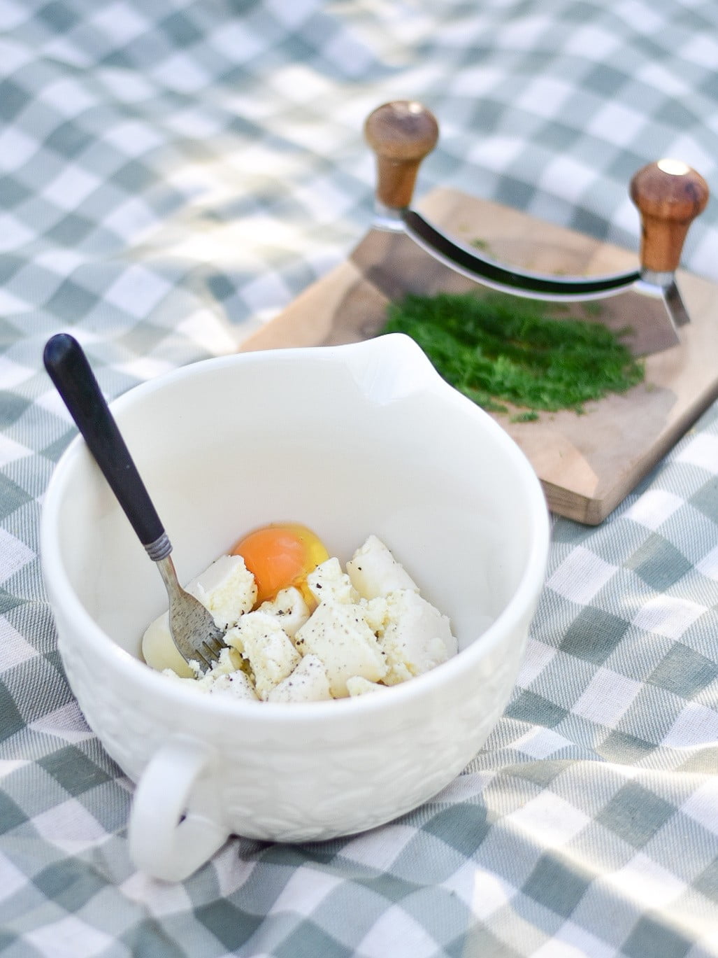 3. Aprítsd fel a kaprot és keverd bele a tojásos-sajtos keverékbe. Ha a juhsajt elég sós, nem kell külön megsóznod.