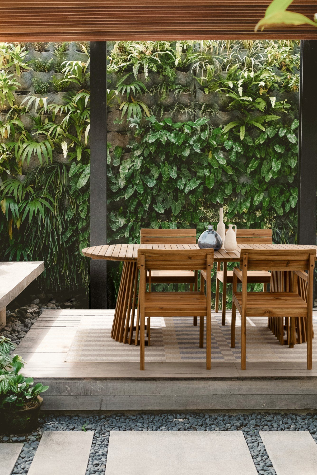 A japandi teraszstílust a minimalizmus, a letisztult vonalak és az olyan anyagok természetes szépségének hangsúlyozása jellemzi, mint a fa és a kő. A semleges színek dominálnak, segítve a nyugodt és harmonikus környezet megteremtését. A futon kerti bútorok, a bonsai és a bambusz kiegészítők szintén jellemzőek erre a stílusra.