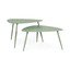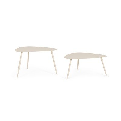 A Bizzotto márka Yvonne szettje két acél dohányzóasztalt tartalmaz, időtálló bézs színben. Az asztalok magassága különbözik, az egyik 35 cm, a másik 45 cm magas. A vékony lábakkal és a lap organikus formájával ellátott kialakításnak köszönhetően az asztalok elegáns és légies benyomást keltenek. Könnyen elhelyezhetők egy kisebb erkélyen vagy teraszon.