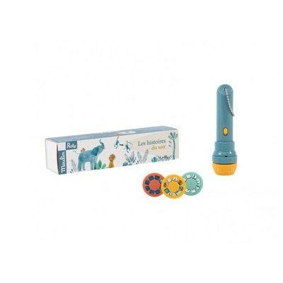 Íme a Moulin Roty márka egyik bestsellere! A bájos képeket tartalmazó zseblámpa projektor három különböző történetet mutat be. A képeket a projektor fejének elforgatásával lehet megváltoztatni, a fókuszáláshoz használd a zseblámpa elejét.