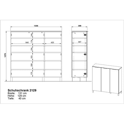 Ceduna cipőtartóForgácslap, felületkezelés: melamin-felületkezelés: üveg, fényes dekorral, szürke, cipők száma (pár) 32 , szélesség 131 cm, magasság 128 cm, mélység 40 cm