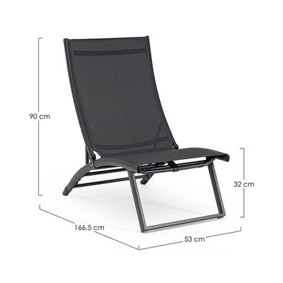 Taylor kerti napozóágyÁllítható-összecsukható, fém, antracitszürke, terhelhetőség 110 kg, szélesség 53 cm, magasság 90 cm, mélység 166,5 cm