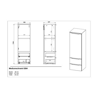 Magas-fali-keskeny, forgácslap, felületkezelés: melamin, antracitszürke, szélesség 36 cm, magasság 111 cm, mélység 34 cm