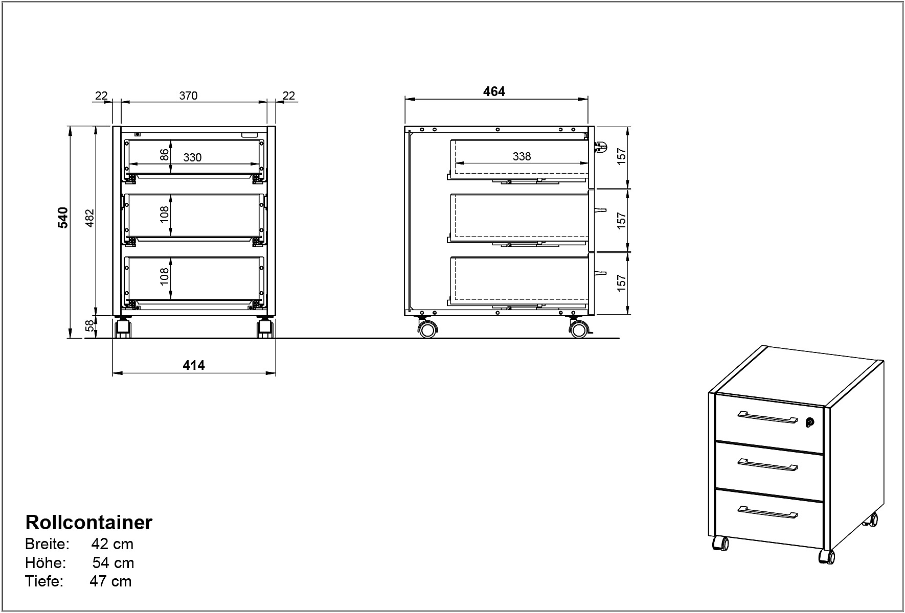 A Podium egy praktikus kerekes szekrény, ami három fiókkal rendelkezik. Elegáns fekete színű fém fogantyúi közül az egyik zárható. Felülete melamingyantával borított. A stabilitás érdekében a négy kerékből kettő fékezhető. Jó tudni: A fiókok mélysége kisebb, mint maga a szekrény, ezért kihúzva nem befolyásolják a szekrény stabilitását.