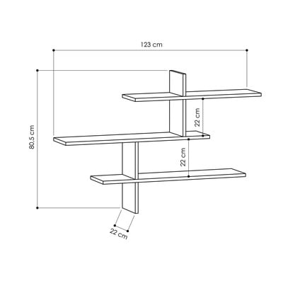 Többszintes, MDF, felületkezelés: melamin, antracitszürke, szélesség 123 cm, magasság 80,5 cm, mélység 22 cm
