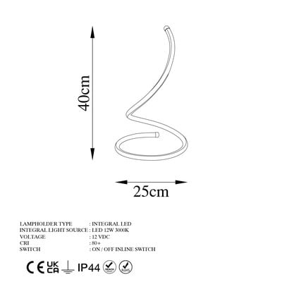 LED, fém, konnektorhoz csatlakoztatható, aranyszínű, magasság 40 cm