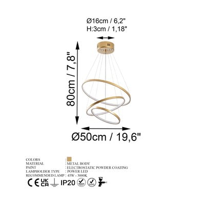 LED, fém, aranyszínű, ø 50 cm, magasság 80 cm