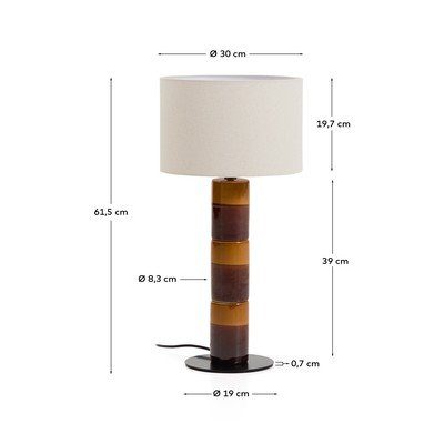 A Kave Home márka Mavran asztali lámpája glazírozott kerámia talapzattal rendelkezik, amelyet váltakozó sávok alkotnak. Karcsú, függőleges kialakítása dinamizmust és egyediséget kölcsönöz minden helyiségnek.