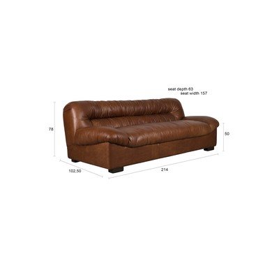 Bőr, barna, háromszemélyes, szélesség 214 cm