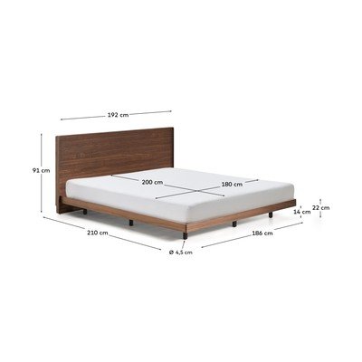 A masszív és robusztus ágykeret 14 db lécből álló, nyírfa rétegelt lemez ágyrácsot tartalmaz, amely tökéletes alátámasztást és optimális szellőzést biztosít a matracnak. A kilenc tömör nyírfa láb elegáns, kerek keresztmetszetű és faerezetes furnérral borított külső profillal maximális stabilitást és a dizájn esztétikai folytonosságát biztosítja.,