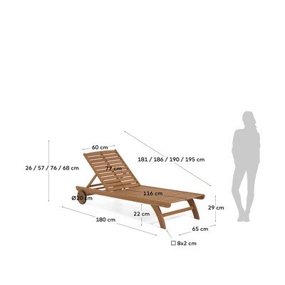 Beila kerti napozóágyÁllítható, tömörfa, natúr színű, terhelhetőség 130 kg, szélesség 65 cm, magasság 29 cm