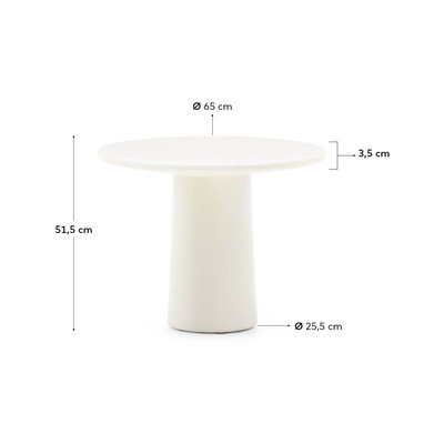 A Kave Home márka Albanella beton kerek kerti dohányzóasztala a stílus és a praktikum harmonikus ötvözetét testesíti meg. Ez a kerek, fényes felületű darab GFRC-ből készült, amely egy üvegszál erősítésű cement kompozit anyag. Ennek köszönhetően könnyű, kopásálló, ugyanakkor robusztus szerkezettel rendelkezik.