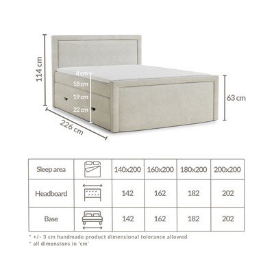 160x200 cm, ágyneműtartós, kárpitozott, matraccal-topper fedőmatraccal, zsenília, bézs