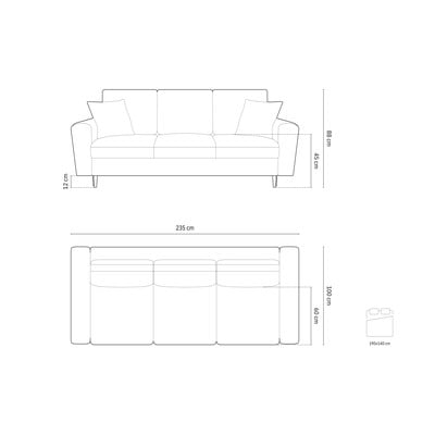 Bársony, kinyitható-tárolóhelyes, bézs, háromszemélyes, szélesség 235 cm