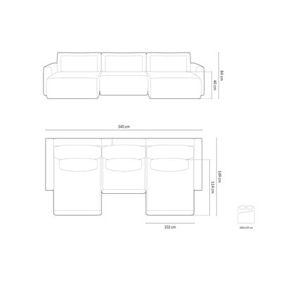Bársony, kinyitható-tárolóhelyes, U alakú, bézs, vízlepergető-háziállatbarát, öt- és többszemélyes, szélesség 340 cm
