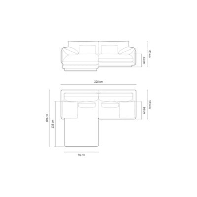 Bézs bársony sarokkanapé (bal oldali-heverő résszel) Torino – Micadoni
