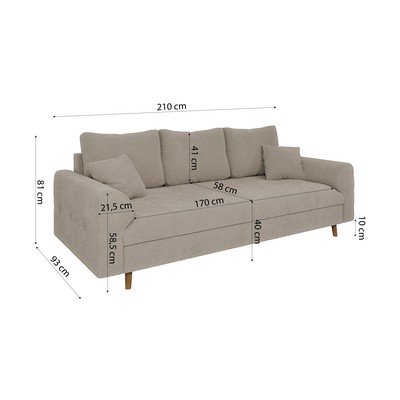 Buklé, bézs, háromszemélyes, szélesség 210 cm