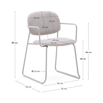 A Kave Home márka Meli fém karfás étkezőszéke egy rakásolható modell, amely egyszerű, mégis elegáns dizájnjával, valamint a háttámla és az ülés lekerekített formáival hívja fel magára a figyelmet.