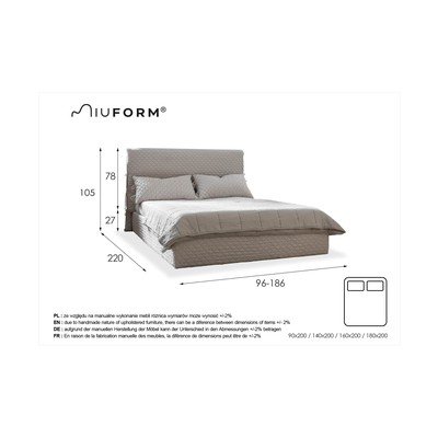 A Sleepy Luna ágy puha támlája egy felhőre hasonlít. Egyedi megjelenését a háromdimenziós szövetek használata fokozza. Az ágytámla részei mindkét oldalon össze vannak kötve - ez egy érdekes részlet, amely felkelti a figyelmet. Az ágy nyitómechanizmusa pneumatikus emelőn alapszik, ami könnyű nyitást és hozzáférést biztosít. A tárolóhelynek szándékosan nincs alja, ez lehetővé teszi a nagyobb és nehezebb tárgyak tárolását is. Megjegyzés: A párnákat a csomag tartalmazza.