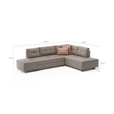Kinyitható, jobb oldali-L alakú, foltálló, bézs, öt- és többszemélyes, szélesség 280 cm, mélység 206 cm, ülésmélység 63 cm