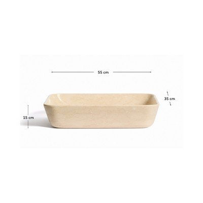 A belülről és kívülről is polírozott felület kiemeli a kő ragyogását és hangsúlyozza organikus eleganciát. A tömör márványösszetétel magas ellenállást és hosszú élettartamot biztosít, még olyan nedves környezetben is, mint a fürdőszoba. Ideális pultra szerelhető mosdókagylóként.