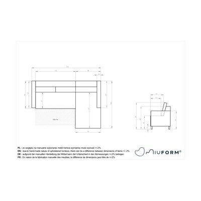 Kordbársony, kinyitható-tárolóhelyes, jobb oldali-heverő résszel, bézs, háromszemélyes, szélesség 236 cm