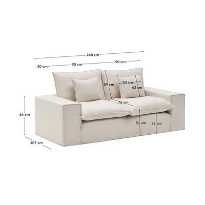 A Kave Home márka Anarela kanapéja kényelmet biztosít és a pihenés menedékévé válik. Kellemes, puha tapintású len anyaggal van bevonva.