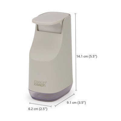 A Joseph Joseph márka Slim műanyag szappanadagolója keskeny kialakításának köszönhetően kisebb helyiségekbe is remekül illik. Kisebb helyet foglal, mint a hagyományos adagolók, még a 350 ml-es űrtartalma ellenére is.