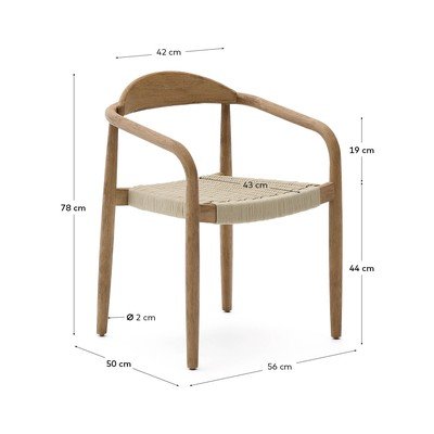 A Kave Home márka Nina tömörfa étkezőfotelje természetes anyagokból, kézműves eljárásokkal készült. Karfás szerkezete tömör akácfából készült, természetes felülettel, így minden egyes darab egyedi tónusokkal és famintázattal rendelkezik. A fa FSC™ tanúsítvánnyal rendelkezik, ami a felelős erdőgazdálkodást garantálja.