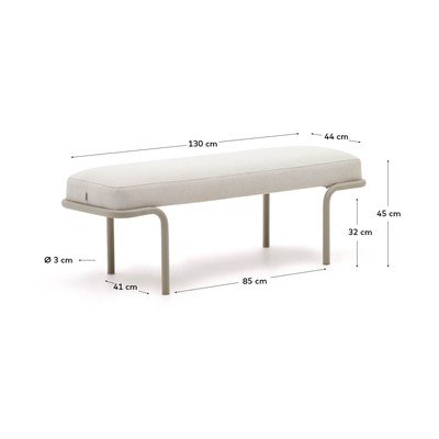 Zsenília, fém-párnázott, bézs, szélesség 130 cm, mélység 44 cm, magasság 45 cm