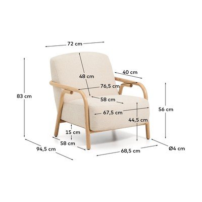 A Kave Home márka Sylo fotelét nagyméretű háttámla és széles ülőfelület jellemzi, amelyeket lekerekített tömör kőrisfa szerkezet keretez. Ez a szerkezet vizuális könnyedséget és ölelő dizájnt kínál.