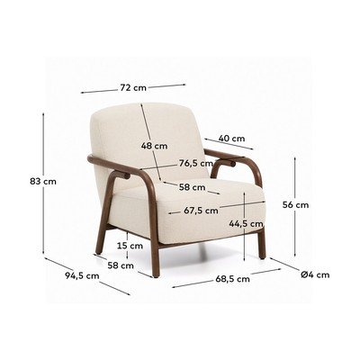A Kave Home márka Sylo fotelét nagyméretű háttámla és széles ülőfelület jellemzi, amelyeket lekerekített tömör kőrisfa szerkezet keretez. Ez a szerkezet vizuális könnyedséget és ölelő dizájnt kínál.