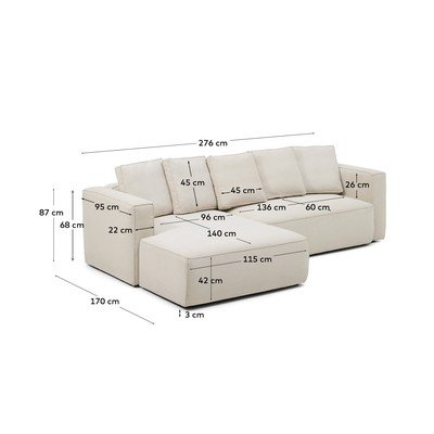 ZseníliaKinyithatóBal oldali-heverő résszelFoltállóBézsNégyszemélyesSzélesség 276 cmMélység 172,5 cmÜlésmélység 70 cm