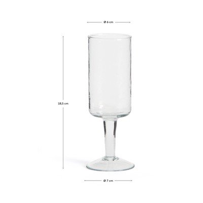 A Kave Home márka Obila borospohara újrahasznosított üvegből készült, ami egyedi megjelenést és környezetbarát jelleget garantál. Egyszerű és időtlen formatervezése könnyedén illeszkedik a különböző stílusokhoz és alkalmakhoz. Az üveg felületét érdekes textúrált felületkezelés díszíti.