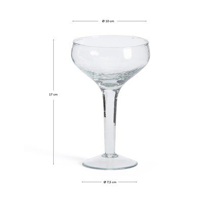 A Kave Home márka Sileia borospohara újrahasznosított üvegből készült. Egyszerű és időtlen formája jellegzetes textúrával párosul, amely kalapált felületre emlékeztet. Különböző stílusokhoz és alkalmakhoz is illik.