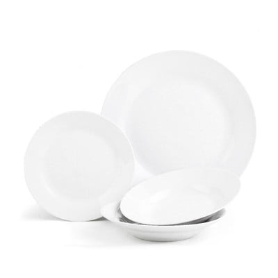 Nagyon meg vagyok elégedve.Vékony tányérok,de mégis erősek.A mélylemezek elsőre kicsinek tűntek,de pont jól passzoltak.Sima fehérek,de jó minőségűek.