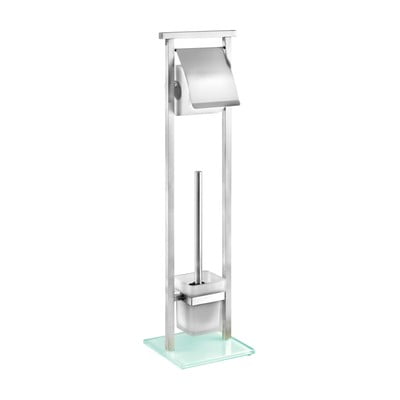 Praktikus kombinációja a WC-kefének és a WC-papírtartónak. A felhasznált anyagok - fém üveggel kombinálva - jó ötlet a dizájn szempontjából.