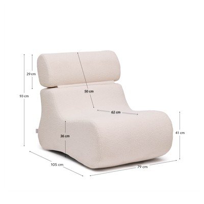 A Kave Home márka Club elefántcsont színű buklé fotele eredeti dizájnjával és organikus formáival tűnik ki. Tartozik hozzá egy lehajtható fejtámla is.