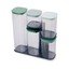 A Joseph Joseph márka dobozkészlete száraz élelmiszerek tárolására alkalmas. A dobozok szilikon tömítésű fedéllel vannak ellátva, ami megakadályozza a levegő bejutását.