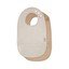 Az előkék mosható anyagból készültek, és mindegyiknek van egy-egy praktikus zsebe, amely felfogja a lehulló ételmaradékot. Az egyik virágmintával díszített, míg a másik egyszínű. A pattintós rögzítésnek köszönhetően könnyen fel- és levehetők.