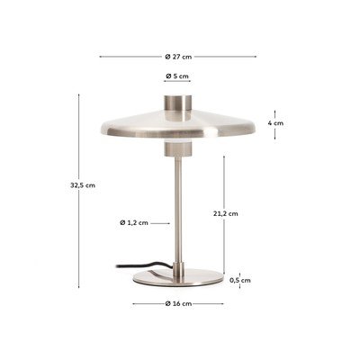 A Kave Home márka Nuvira asztali lámpája elegáns és funkcionális dizájnjával ragad meg. Matt acél szerkezete modern és kifinomult hangulatot kölcsönöz minden helyiségnek. A lámpa jellegzetes, lapos búrával, karcsú állvánnyal és kerek talppal rendelkezik.