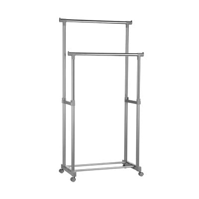 Teleszkópos-gurulós, fém, ezüstszínű, 80x43 cm, magasság 152 cm