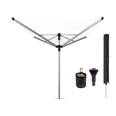 Jó tudni: A csomag tartalmaz egy 50 mm átmérőjű, betonba való szilárd rögzítéshez szükséges rögzítőkonzolt, egy akasztós csipesztartó zsákot és egy időjárásálló védőhuzatot is.
