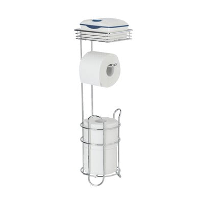Stabil, szabadon álló WC-papírtartó, a felső polc pont megfelelő egy doboz nedves WC-papírnak, az alsó kosárban könnyedén elfér 3 tartalék tekercs. Me...