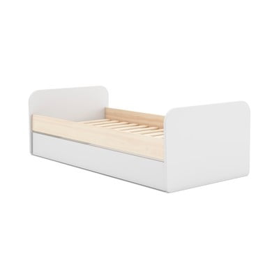 90x200 cm, kihúzható pótággyal, ágyneműtartós, ágyráccsal, borovi fenyő dekorral, felületkezelés: lakkozás, fehér