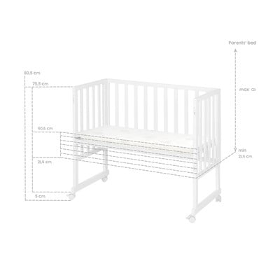 90x45 cmLevehető oldallal-állítható magassággal-gurulós-ágy mellé helyezhetőMatraccalMDFFelületkezelés: festékFehér