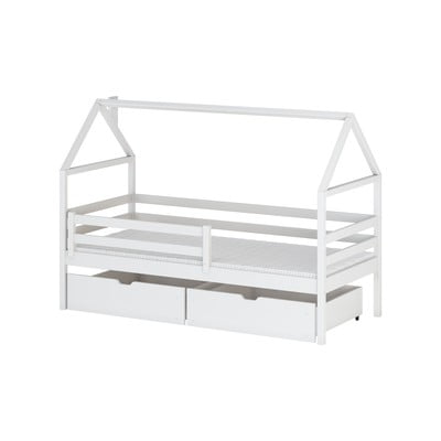 80x160 cm, házikó alakú, ágyneműtartós, ágyráccsal, borovi fenyő, felületkezelés: lakkozás, fehér
