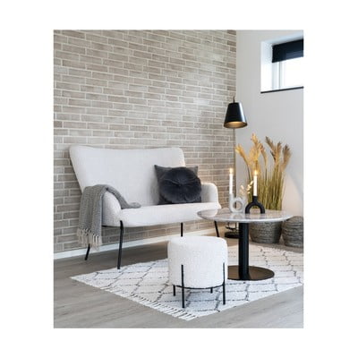 A House Nordic kétszemélyes Glasgow kanapéja elegáns, krémszínű buklé kárpitozással és fekete fémlábakkal rendelkezik és kellemes, modern hangulatot varázsol a belső térbe.