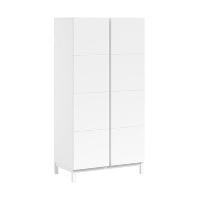 Az Eva ruhásszekrény praktikus és stílusos megoldás a gyerekszobába. Bőséges tárolóhelyet kínál a ruhák és egyéb holmik számára. Mérete 99 x 196 x 58 cm, így könnyen elfér a különböző helyiségekben. Letisztult fehér kialakítása világos és légies megjelenést kölcsönöz a szobának.