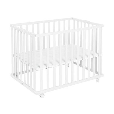 Járóka75x100 cm, állítható magassággal-gurulós-összecsukható, ágyráccsal, MDF-furnér, fehér